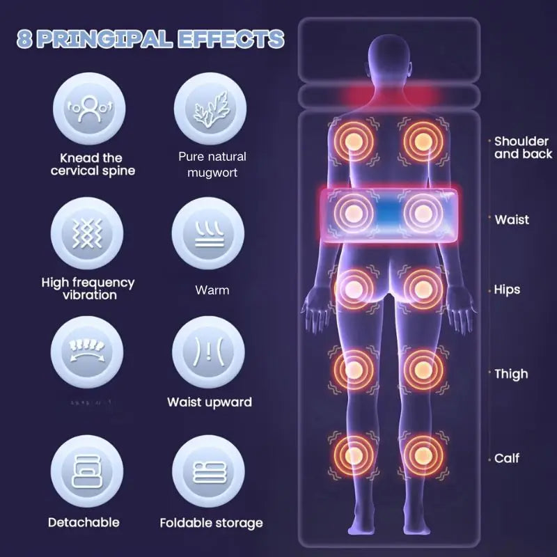 Relieve neck tension and whole-body soreness with a massage mat that combines kneading neck therapy, full-body vibration, and warming heat in one seamless session.